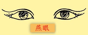 眼睛细长,瞳孔比较接近眼角,瞳孔上方约有三分之一为上眼皮所盖,眼尾优雅的微微上翘,有点笑口口的样子,眼有眼光流而不动,迷人而富有魅力,个性温柔,只是好奇心重,容易轻易相信別人,如能坚持走正道,前程光明灿烂,只怕走错了一步,以后什么都不顾,子女运就不会好。
