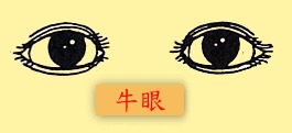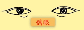 眼睛稍微细长,眼尾略微上翘,眼睛的瞳孔较小,上方约有三分之一为上眼睑所覆,和下眼睑却若即若离,外表似若凹眼,眼白略有红晕,当其翘首仰视,好像漠视虚空,为人极重人情味和信义,性情稍嫌偏急,老实而胆小,缺乏积极进取的毅力,只会机巧应付了事,虽非富有,但物质生活并不缺乏,凭其聪颖,在青少年时就可能有点名声。
