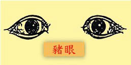 眼形圆,眼小而微黄,眼神朦胧,每好翻眼睛仰面看人,有小聪明,性好多疑,拘泥小节,奸贪狡猾,为人灵活而有勇无谋,如能自求上进、努力工作,可以有成,如果轻举妄动,戏谑人生,贪淫好色,就自我糟蹋,晚运尚佳,可惜只是虚名一时,子女虽多,但成器的少。